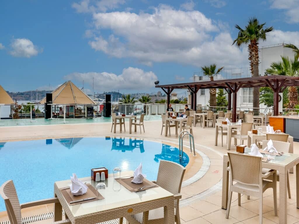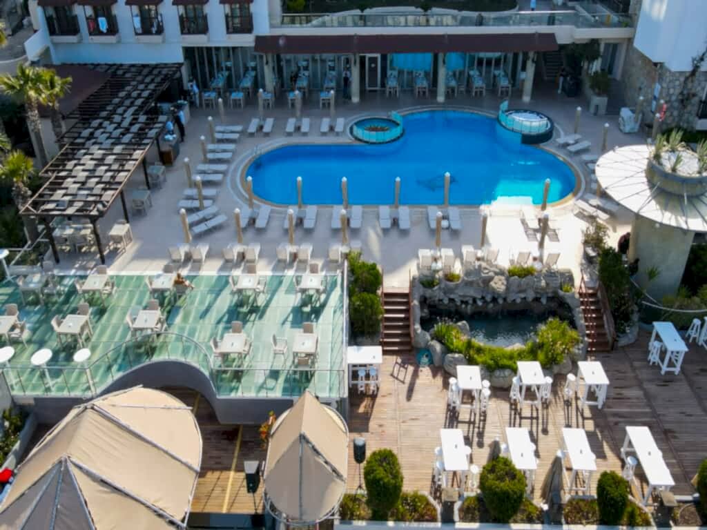 Denize sıfır konumdaki tesisimizde, 100m uzunluğunda kum-çakıl karışımı özel plajımız bulunmaktadır. Havuzda ve plajda şezlong, şemsiye ve minder ücretsiz olarak temin edilmekte olup; havlular, havlu kartı ile havuz başındaki standtan temin edilmektedir.